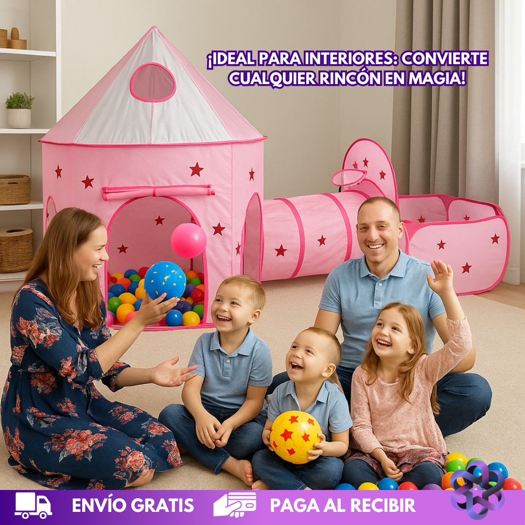 La Carpa Castillo 3 en 1 crea un espacio lleno de imaginación para que jueguen durante horas sin pantallas. Con túnel, castillo y piscina de pelotas, tus pequeños pueden explorar, gatear, inventar historias y divertirse sin límites.