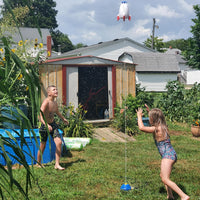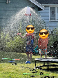 Este cohete aspersor transforma cualquier patio en un espacio de juego refrescante y divertido. Solo conéctalo a la manguera y deja que el agua gire y salpique por todos lados. Menos calor, más risas y niños activos sin pantallas.