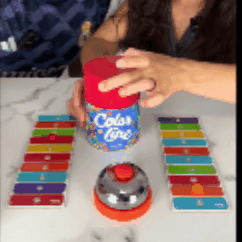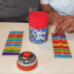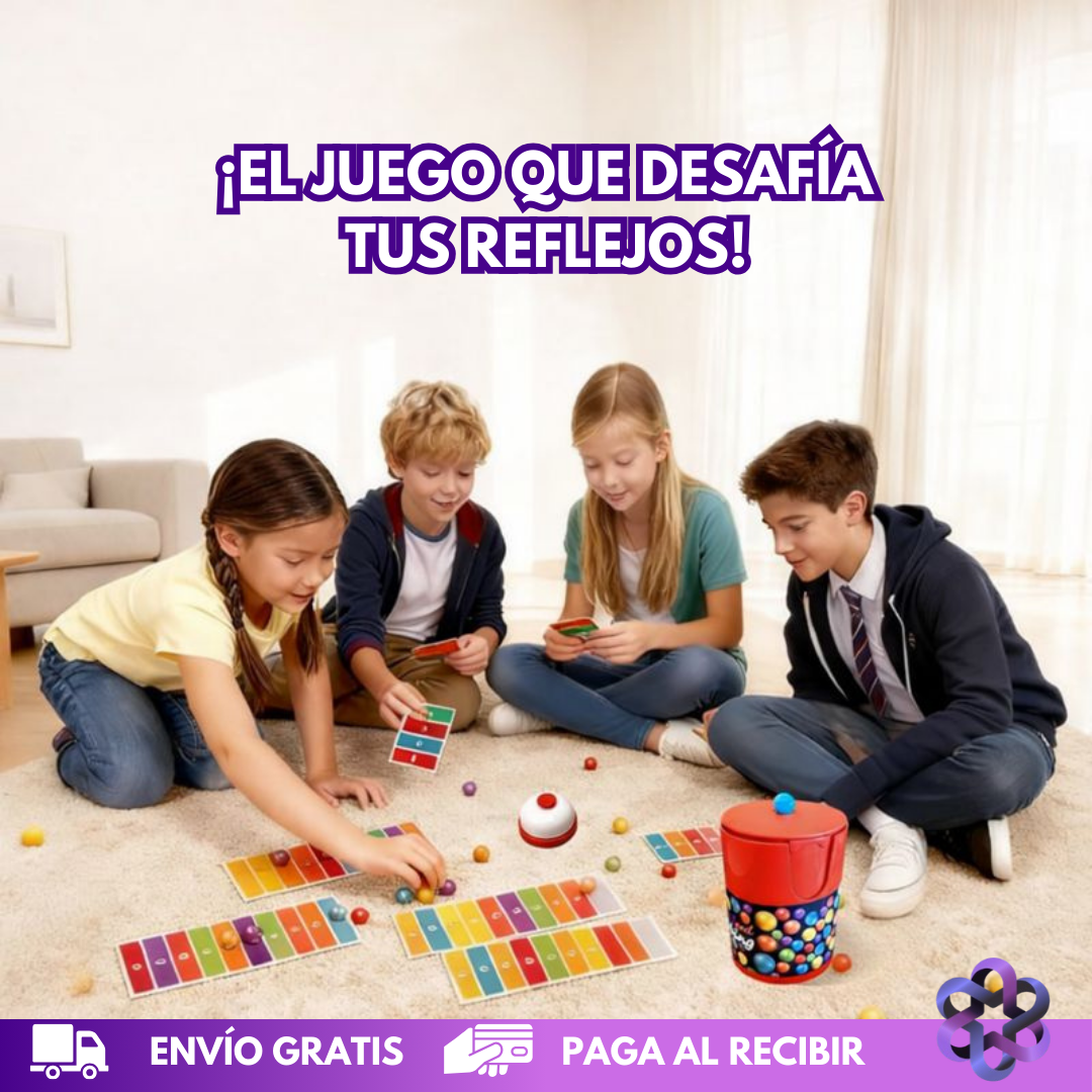 Llena el tarro rojo con las bolitas de colores y que empiece el reto. Cada bolita que cae es una oportunidad… o un error que te puede costar caro. Observa tu tablero, decide en segundos y golpea la campana solo si ese color te sirve. ¿Te adelantaste? Pierdes una bolita. ¿Aciertas? Avanzas hacia la victoria. Gana quien complete primero su línea de colores. Un juego donde la rapidez, la concentración y los nervios de acero hacen la diferencia.