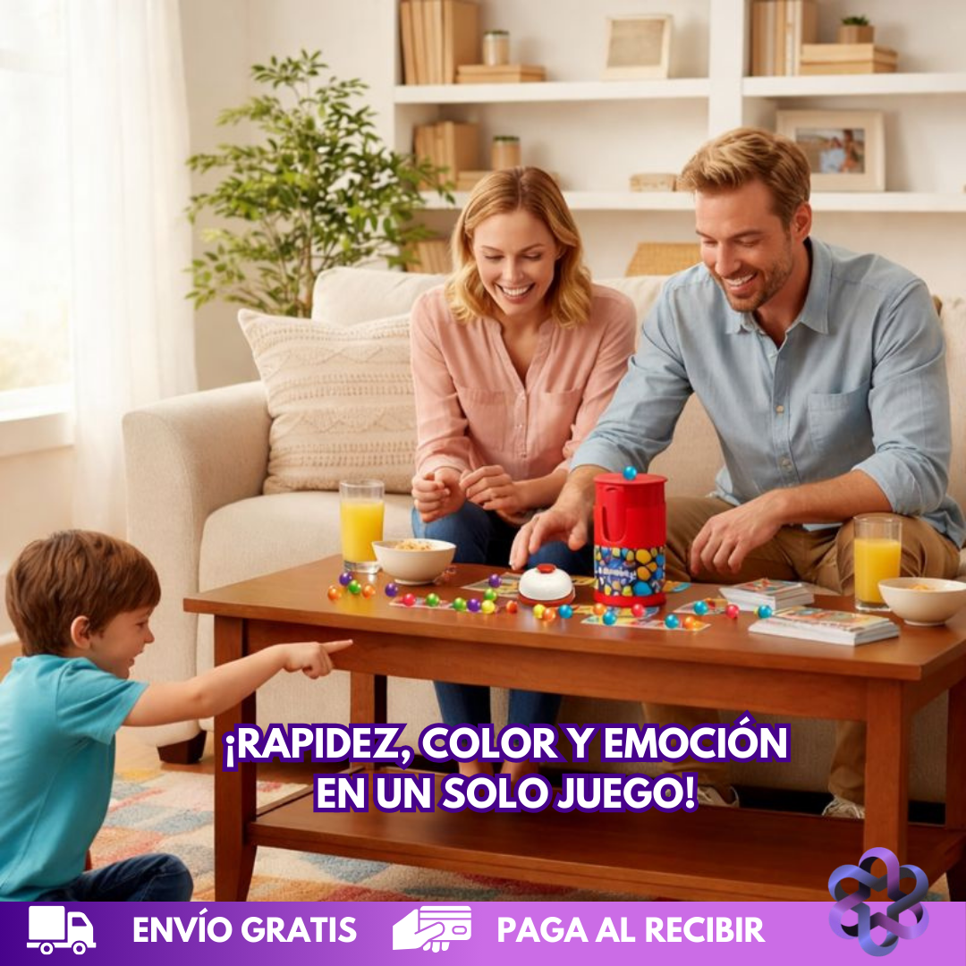 Este juego de colores mantiene la emoción en cada ronda gracias a su dinámica de velocidad y reflejos. Todos participan, todos se activan y nadie se queda fuera. Ideal para transformar cualquier momento en diversión inmediata, sin pantallas ni reglas complicadas.