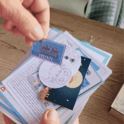 Está hecho de cartón y papel, tamaño compacto y ligero (aprox. 16,5 x 13 x 3,3 cm, 81 g), lo que lo hace cómodo de guardar. Con cuidado puede mantenerse en buen estado para reutilizar o conservar como recuerdo.