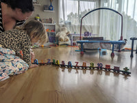 A mi hija le cuesta concentrarse, pero con este tren juega tranquila. Ya reconoce los números y hasta arma secuencias sola. Los imanes son fuertes y seguros. ★★★★★