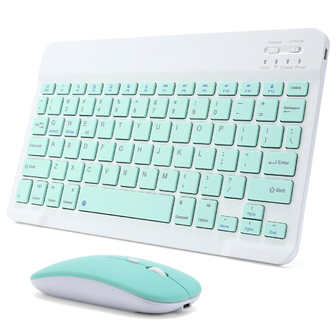 Teclado suave, mouse silencioso, conexión Bluetooth sin cables y recargable (sin pilas).